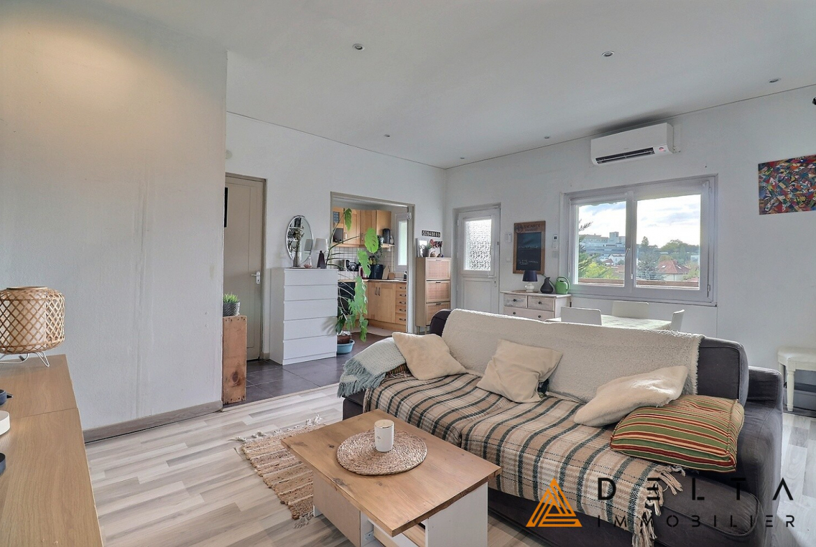 Delta Immobilier vous propose en exclusivité ce lumineux T3 de 55 m², situé au 2e et dernier étage sans ascenseur d’un immeuble de 1933, avec une vue dégagée sur Lyon.