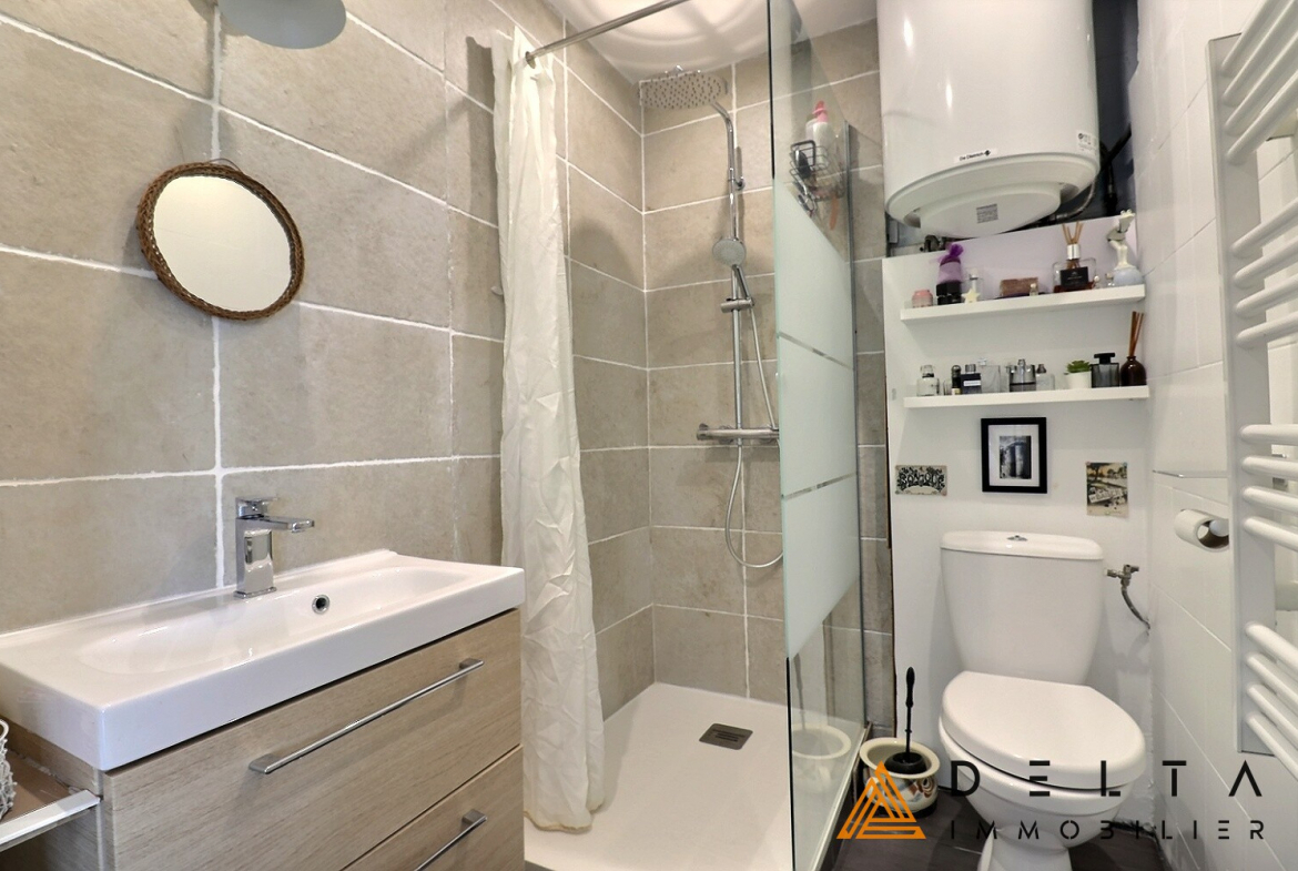 Deux chambres confortables de 9 et 12 m², ainsi qu’une salle d’eau avec WC complètent l’ensemble.