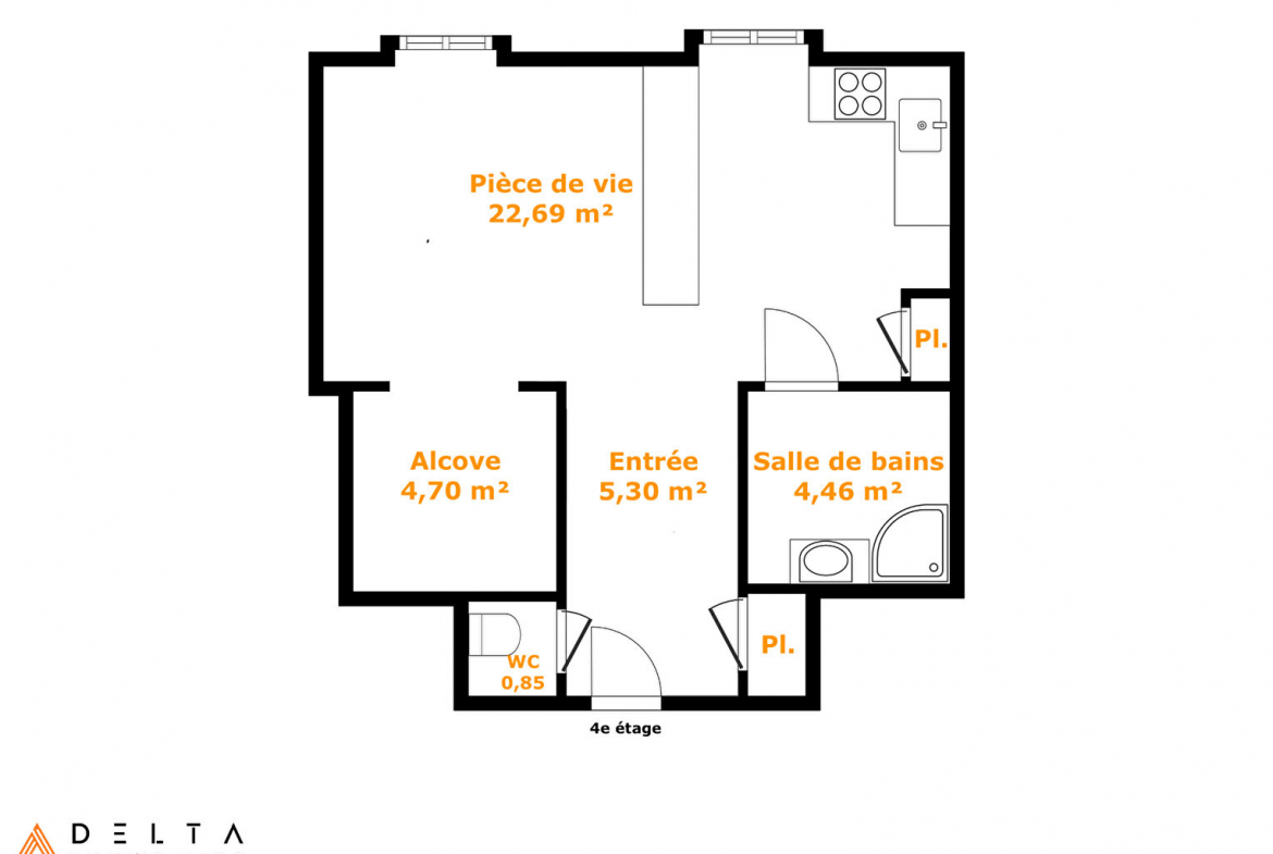 Pour découvrir ce bien, visitez notre site delta.immo où vous pourrez accéder à la visite virtuelle, consulter le plan détaillé du logement et découvrir notre proposition d’aménagement pour sa transformation en T2. La visite virtuelle vous permet même de mesurer chaque espace (option disponible en bas à gauche).