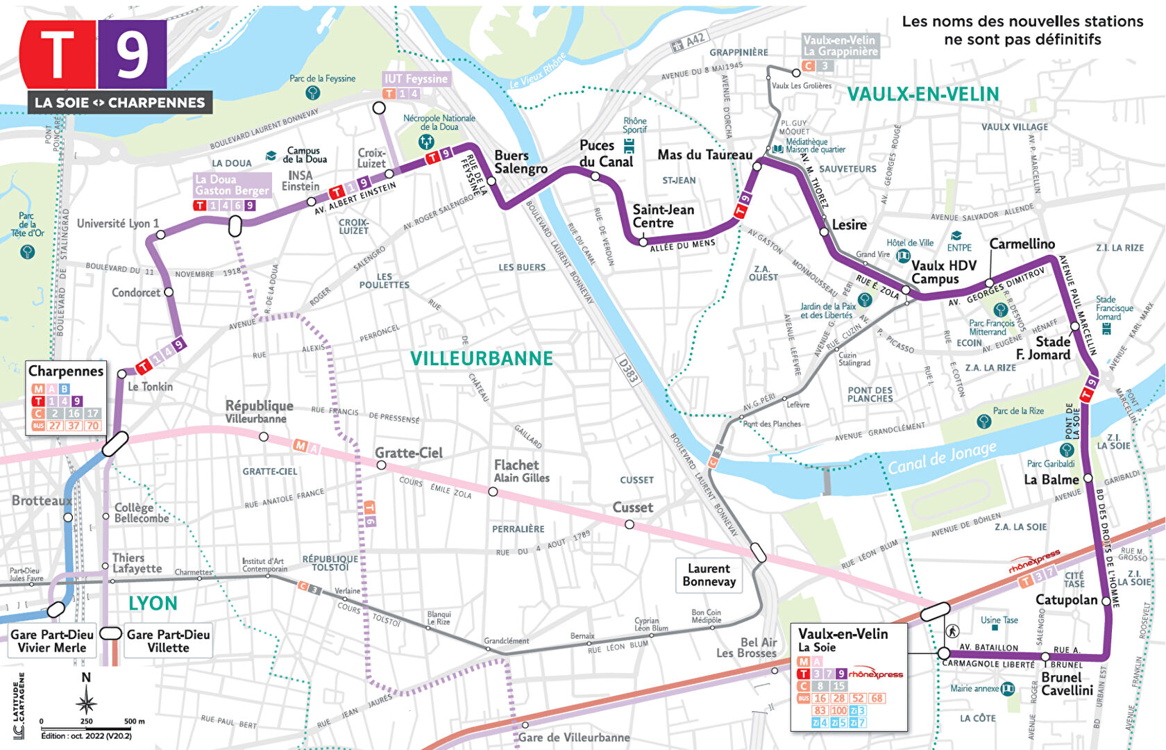 Pour les transports vous aurez le nouveau tramway T9 en 2026 qui vous permettra de relier Charpennes en 20 minutes et Vaulx la Soie en 13 minutes.