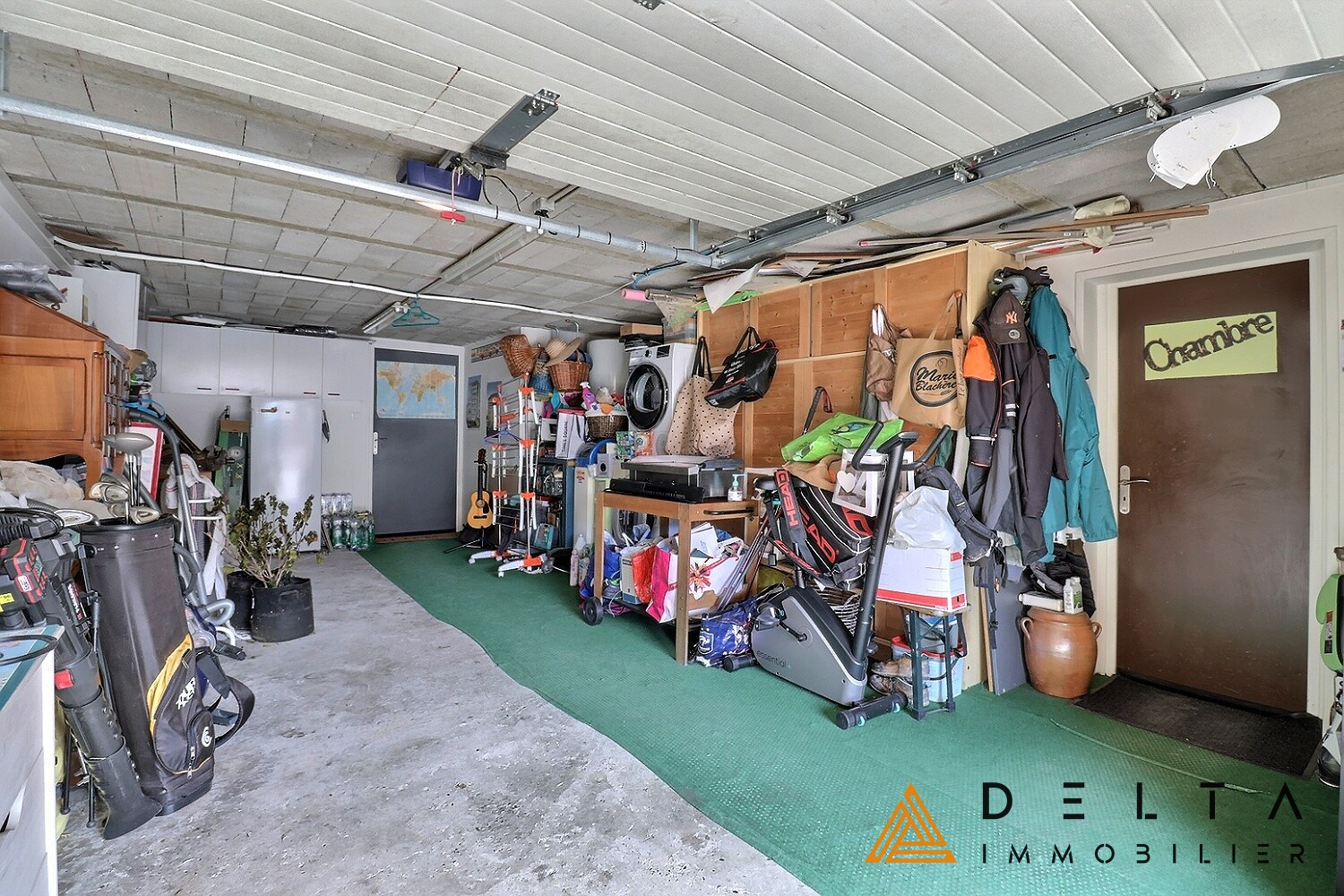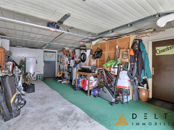 La maison dispose également d’un garage de 28 m² ainsi que d’une cave de 8 m², offrant des solutions de rangement appréciables.